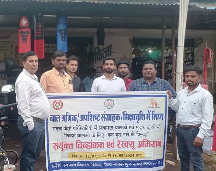 बलरामपुर: संचालनालय महिला एवं बाल विकास विभाग रायपुर के निर्देशानुसार जिला बलरामपुर-रामानुजगंज में महिला एवं बाल विकास विभाग द्वारा किशोर न्याय बालकों की देखरेख एवं संरक्षण अधिनियम के तहत् बाल श्रमिक/अपशिष्ट संग्राहक/भिक्षावृत्ति में लिप्त बच्चों के सर्वेक्षण, रेस्क्यू एवं पुर्नवास हेतु विशेष अभियान 15 जुलाई 2024 से 14 अगस्त 2024 तक रेस्क्यू अभियान का संचालन जिला बाल सरक्षण इकाई, श्रम विभाग, चाईल्ड लाईन एवं पुलिस विभाग के संयुक्त प्रयास से किया जा रहा है। इसी कड़ी में गत दिवस विकासखण्ड शंकरगढ़ एवं राजपुर में प्रमुख सार्वजनिक स्थानों में रेस्क्यू अभियान किया गया, जिसमें दुकानदारों को समझाईश दिया गया की अपने प्रतिस्थानों में 18 वर्ष से कम उम्र के बच्चों को कार्य पर नहीं रखें एवं बच्चों को मादक पदार्थों की बिक्री नहीं करें। ऐसा करना दण्डनीय अपराध है एवं ऐसा करते पाये जाने पर दण्ड/जुर्माना या दोनों का प्रावधान संबंधी जानकारी दी गई तथा लोगों को बताया गया की यदि आपके आस-पास ऐसे कोई बच्चे है जिन्हे देखरेख एवं संरक्षण की आवश्यकता है तो निःशुल्क नम्बर 1098 पर काल करें।