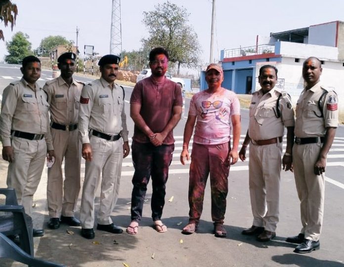 चेक पोस्ट में तैनात पुलिस जवानो के संग कलेक्टर, एसपी ने मनाई होली
