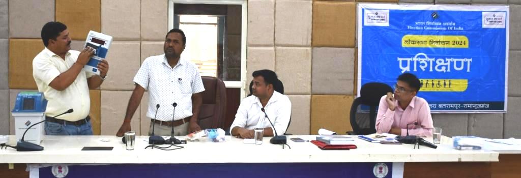 बलरामपुर: लोकसभा निर्वाचन 2024 हेतु कलेक्टर एवं जिला निर्वाचन अधिकारी रिमिजियुस एक्का के मार्गदर्शन में संयुक्त जिला कार्यालय के सभा कक्ष में सेक्टर अधिकारियों, मास्टर ट्रेनर्स व तकनीकी सहायकों को ईव्हीएम मशीन की सीलिंग एवं कमीशनिंग का प्रशिक्षण दिया गया। उप जिला निर्वाचन अधिकारी अमित श्रीवास्तव ने प्रशिक्षण के दौरान कहा कि सेक्टर ऑफिसर निर्वाचन की हर प्रक्रिया की पूरी जानकारी रखें। प्रशिक्षण में दी जा रही सभी जानकारियों को बारीकी से समझें। ताकि निर्वाचन के दिन किसी भी तरह की परेशानी न हो।